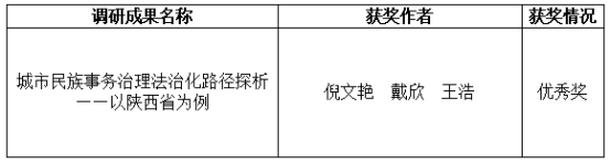 近日,陕西省民族宗教事务委员会公布2025年度全省民族宗教工作优秀调研成果评选获奖名单,我校1篇调研报告荣获优秀奖。